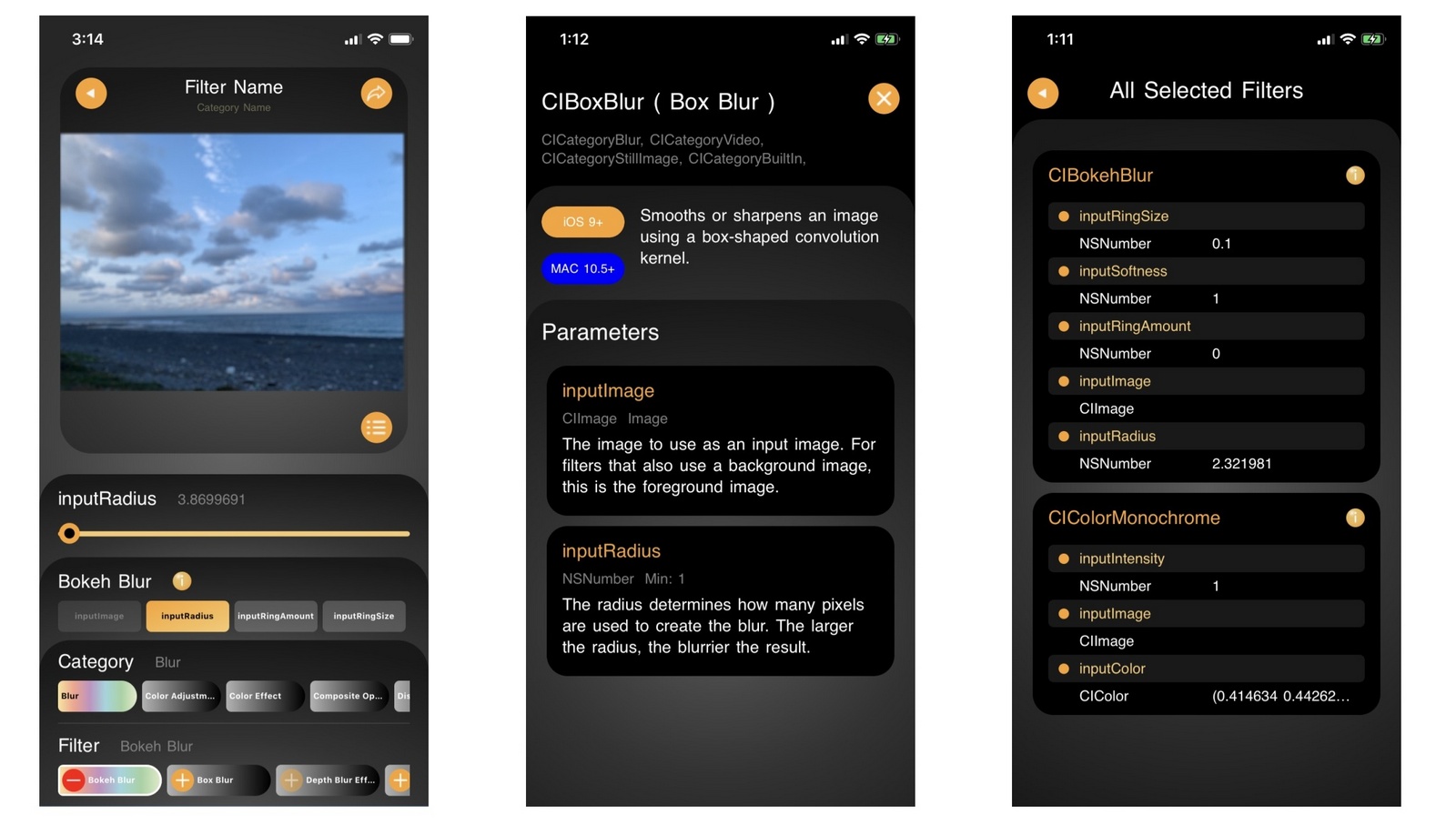 A simple app that can easy apply Core Image Filters on your photo and can easy adjust filter parameters.